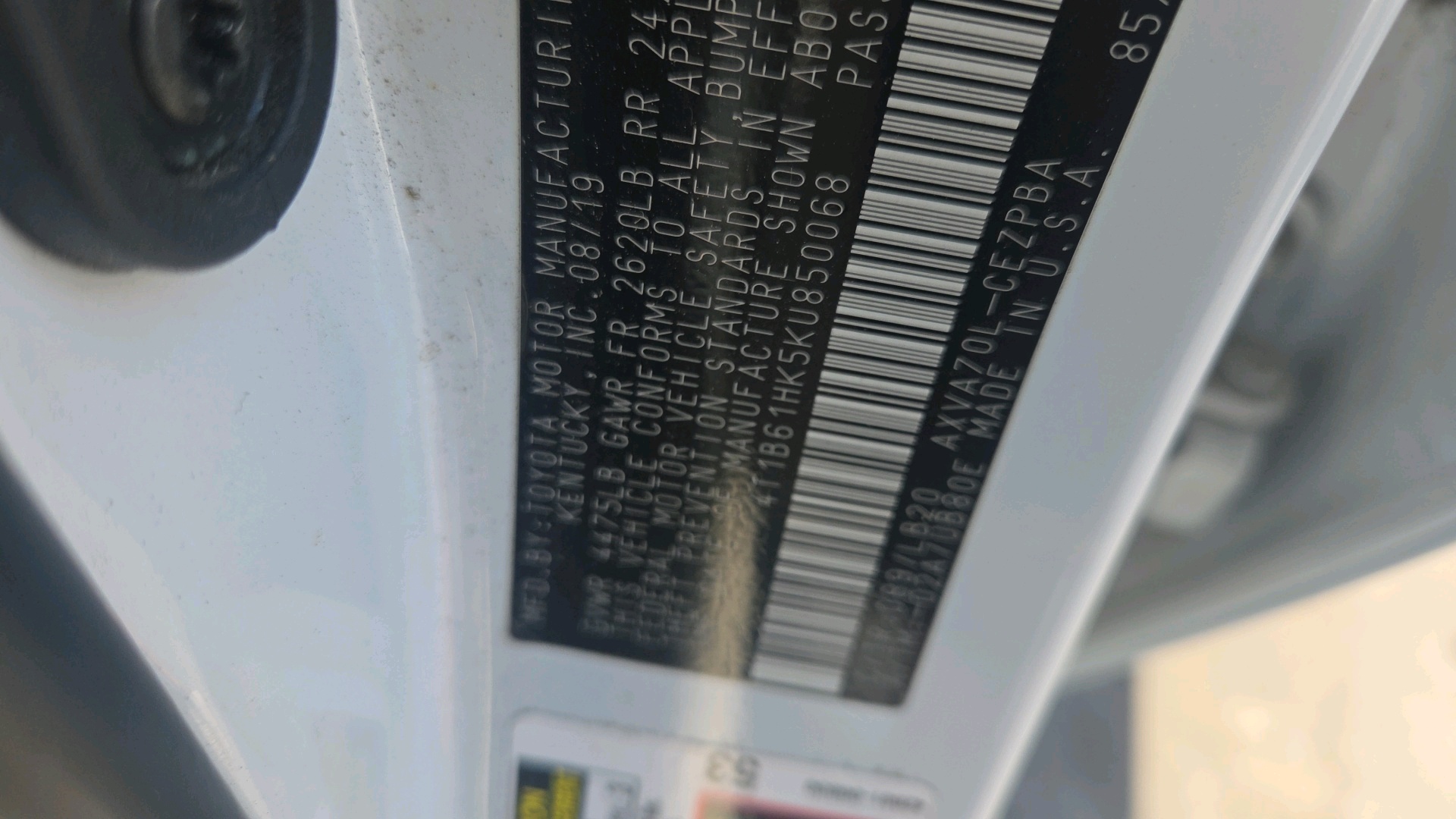 | VIN: | 4T1B61HK5KU850068 | Fuel: | ||